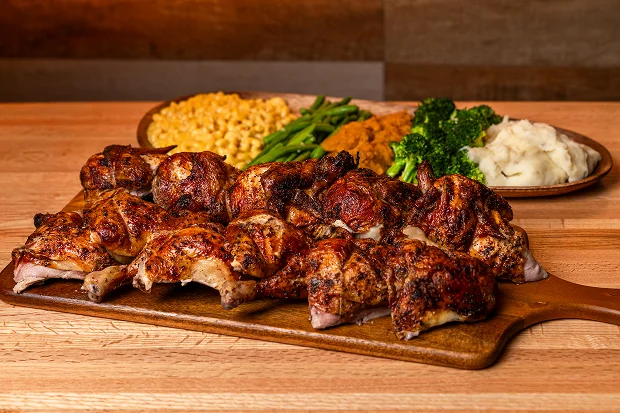 5 Whole Roasted Chickens (cut up), 4 Trays of any Side Dish,